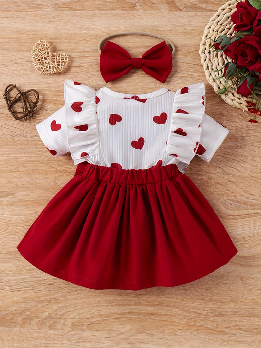 Baby Girl կարճաթև Love Print Bow զգեստ P100497