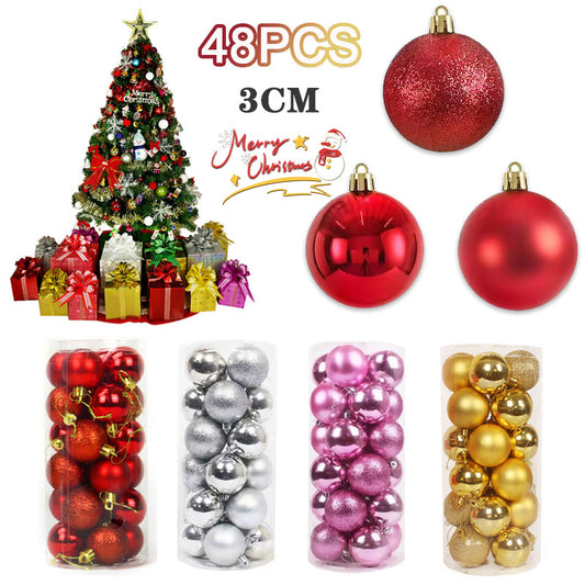 3cm 48pcs Decorative Balls, Christmas Ornaments, Sequined Multicolor Hanging Balls, Christmas Tree Hanging Holiday Decorations, Christma Tree Bauble, Christma Bauble, Christmas Decoration, Christmas Balls