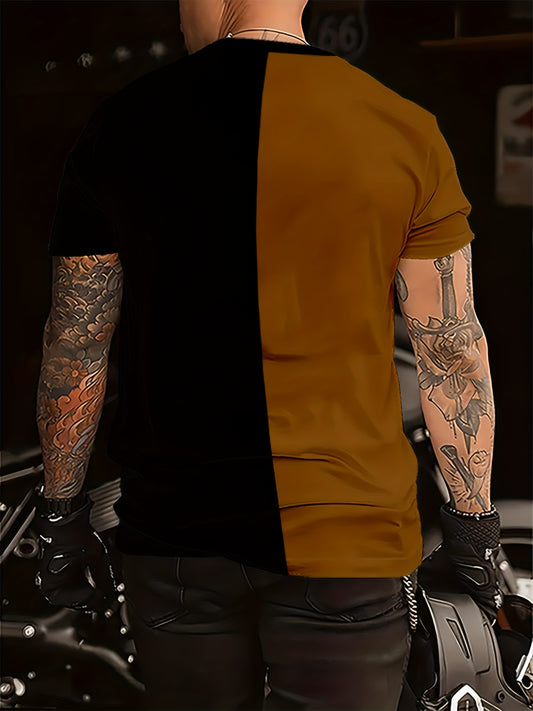 Տղամարդկանց ոճային "Հավատա ինքդ քեզ" գրաֆիկական տպագրությամբ շապիկ - Կրճատված պարանոցով, սև-նարնջագույն դիզայնով, կարճ թևերով, ամբողջ տարվա համար հարմարավետ ֆիթով, ամենօրյա հագուստի համար, երկարակյաց գործվածքից պատրաստված, բաժանված գույնով շապիկներ: