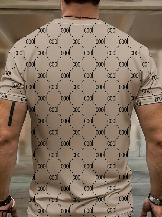 Տղամարդկանց 2-կտորանոց «COOL» այբուբենային տպագրության ամառային հավաքածու, տղամարդու կարճաթև վզով շապիկ և էլաստիկ գոտկատեղ՝ գրպաններով