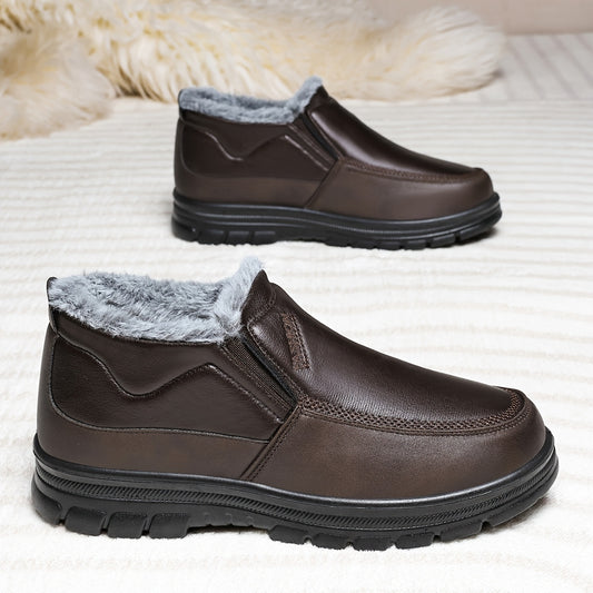 Տղամարդկանց համար նախատեսված սահելուց պաշտպանող ձմեռային կոշիկներ, փափուկ ներդիրով և հաստ ռետինե ներբանով - Ջերմամեկուսիչ ձմեռային կոշիկներ, միկրոֆիբրե վերնամաս, փափուկ PU ներբան, միագույն դիզայն ցուրտ եղանակի համար, ձմեռային կոշիկներ