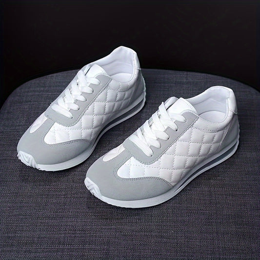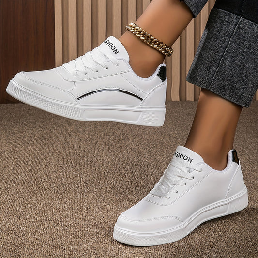 Կանացի թեթև պատահական սպորտային կոշիկներ - սպիտակ սինթետիկ կաշի, հարմարավետություն բոլոր սեզոնների համար, կայունության աջակցություն, շնչող գործվածքից աստառ, TPR ներբան, կատարյալ պատահական հագուստի համար, գեղեցիկ կոշիկներ