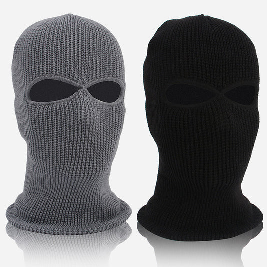 Տղամարդու բրդյա ծածկույթով ձմեռային բալակլավա՝ քամուց պաշտպանող, ջերմային դահուկային դիմակ՝ կրկնակի անցքերով՝ բացօթյա սպորտաձևերի համար