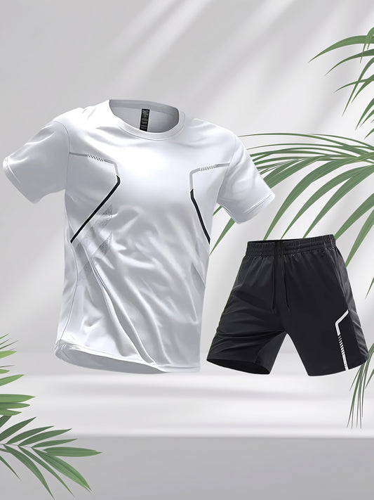 2 հատ ամառային նոր, կայծակնային նախշերով սպորտային կոստյում՝ տղամարդու կարճ թևքերով շորտեր, բացօթյա մարզումների, շնչող, արագ չորացող, ազատ վազքի հագուստի հավաքածու