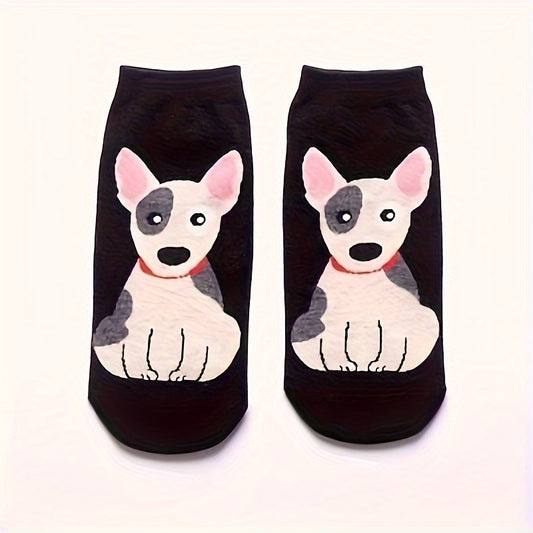 5 զույգ գեղեցիկ մուլտֆիլմ Dog & Cat Crew գուլպաներ կանանց համար, պոլիեսթեր և սպանդեքս խառնուրդ, տրիկոտաժե գործվածք, սովորական անիմե ոճ, չսահող կարճ գուլպաներ, մեքենայով լվացվող