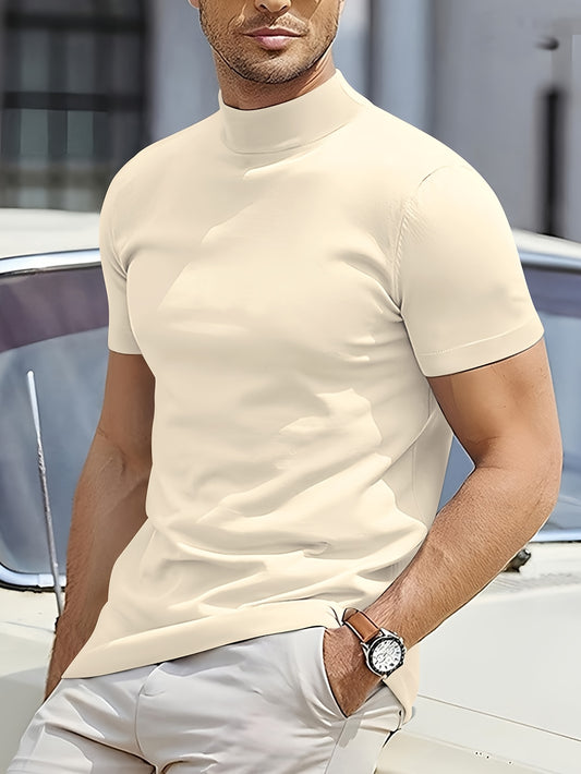 Ամառային, բարակ, ձգվող, արագ չորացող, վազքի, ֆիթնեսի, կարճ թևքերով, տղամարդու բարձր վզնոցով, ամենօրյա մարզաշապիկ | Միագույն, իդեալական է սպորտի և ամենօրյա հագուստի համար