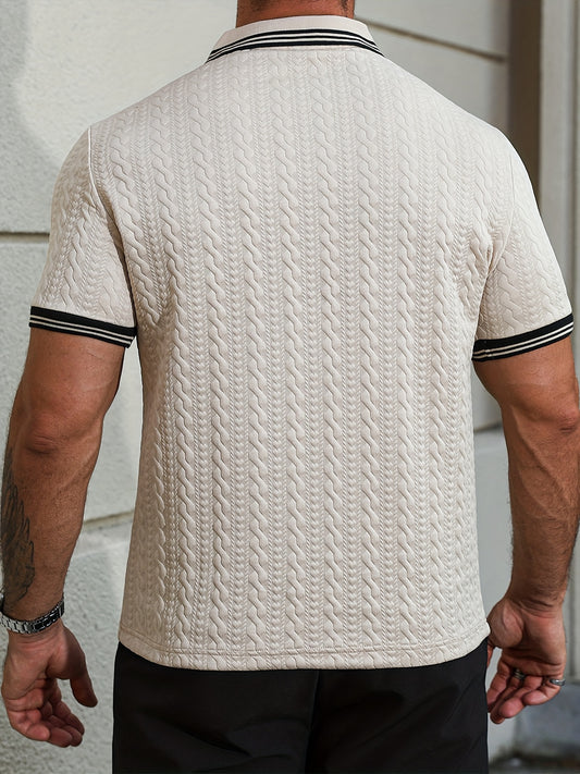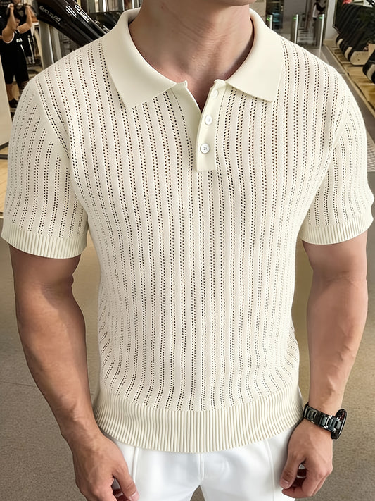 Տղամարդու ամառային տրիկոտաժե պոլո շապիկ | Շնչող գծավոր դիզայն, ամենօրյա օձիք, կարճ թևքեր, երեք կոճակով փակվող, նեղ չափս, իդեալական է բիզնեսի, առօրյա և ճանապարհորդության համար