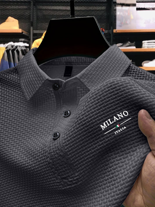 Միագույն Միլանյան տառերով տպագրված գունային արգելափակման դիզայն, նոր տղամարդու կարճ թևքերով պոլո շապիկ՝ ամառային միագույն հագուստի վերնաշապիկով, կարճ թևքերով, բազմակողմանի տղամարդու հագուստ, հարմարավետ կարճ թևքերով վերնաշապիկ՝ տան, առօրյա, զբոսանքի համար