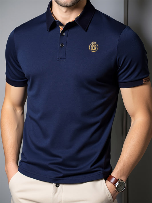 Տղամարդու շրջադարձային օձիք 95% բամբակ 5 սպանդեքս ասեղնագործված կարճ թևքով, հարմարավետ, շնչող