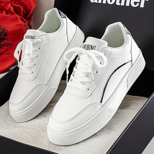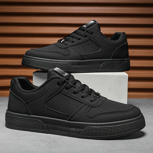 Men'S Breathable Skateboarding Shoes | Low-Top Casual sneakers, Black and White, PU Upper, Lace-up Closure, Suitable for All Seasons