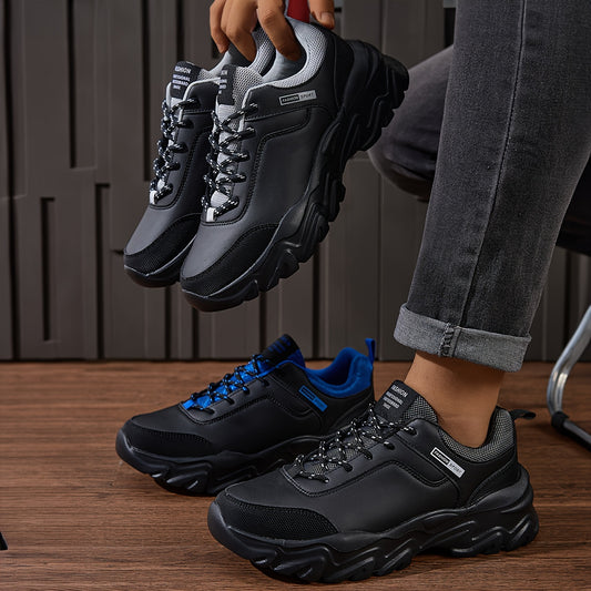 Men'S PU Lace-Up Comfortable Casual Shoes, Trendy Sports Shoes with Lightweight MD Soles for Outdoor Use, Ideal for Elderly Leisure Walking