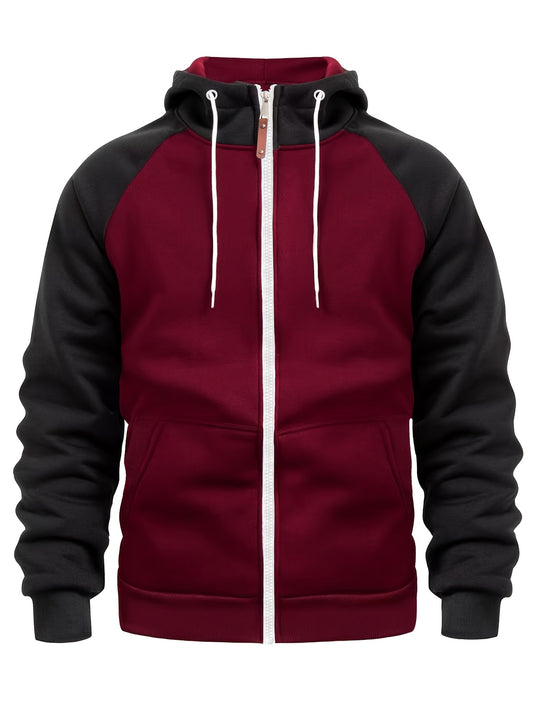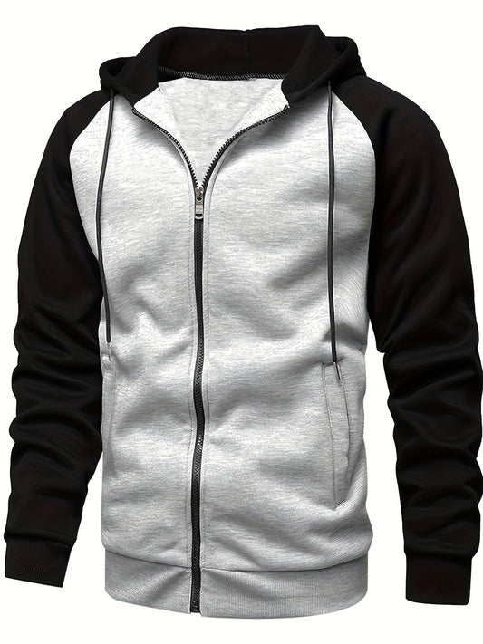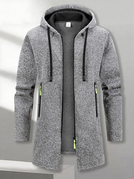 Men's Casual Mid-Length Hooded Jacket, Retro Fashion Street Style Sweatshirt Coat for Autumn/Winter Solid Color Warm Cardigan with Contrast Zipper Pocket Design Suitable for Daily Leisure, Sports, Gym and Trekking, Sports Act