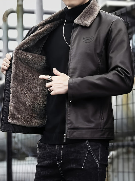 1pc Men'S Casual Stand Collar Fleece Jacket - Solid Color Zip-Up with Pockets, Warm & Stylish for Fall/Winter, Perfect for Commuting, Outdoor Activities, Work, and Casual Attire, Winter Jacket, Workwear, Minimalist Design, Du