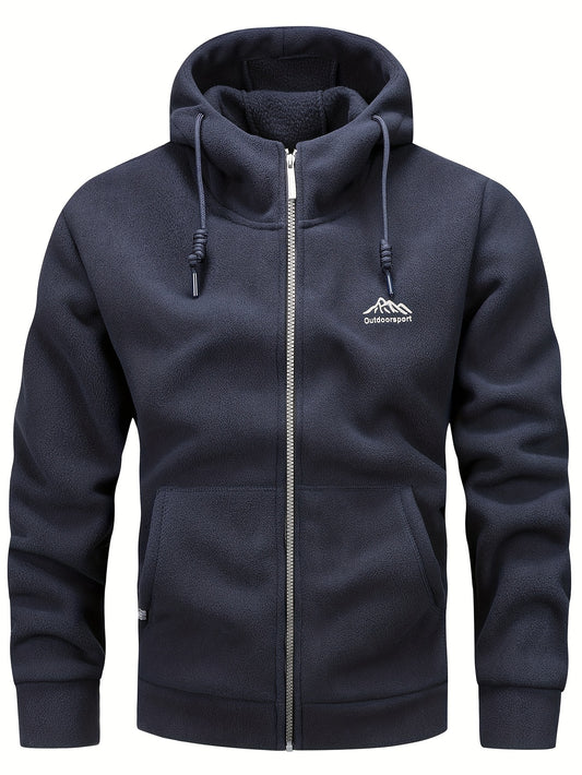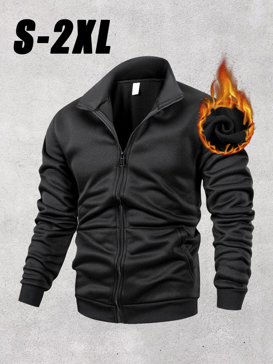 Men'S Slim-Fit Fleece-Lined Zip-Up Hoodie - Warm Long Sleeve Casual Jacket with Stand Collar, Solid Color, Polyester Lining, Pockets, Regular Fit for Fall/Winter, Winter Hoodie, Autumn Outerwear, Sleek Design, Durable Fabric,