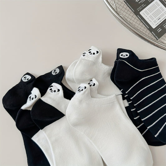 Կանացի բամբակյա գուլպաներ մինչև կոճ երկարությամբ 5 զույգ հավաքածու՝ Panda-ի ասեղնագործությամբ, շնչող խոնավությունը մաքրող տրիկոտաժով, հակաբույրով, անթերի մատներով, ձգվող սպանդեքսով խառնուրդ - 200 ասեղի չափս