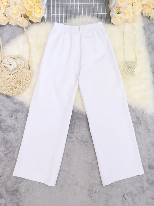 Կանացի շքեղ սպիտակ ուղիղ կոստյում գրպաններով տաբատ՝ սովորական պոլիեսթեր խառնուրդ, կոճակներով փակվող, կատարյալ գարուն/ամառ նորաձևության համար
