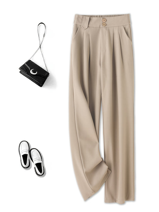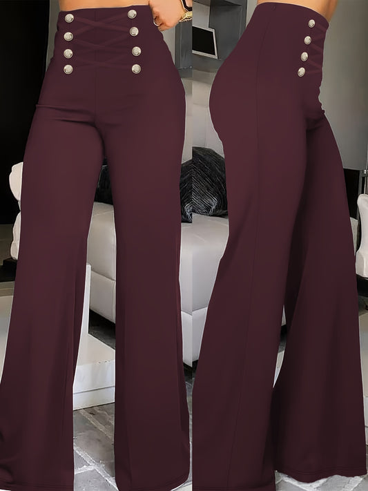 1 հատ Կանացի բարձր գոտկատեղով առօրյա լայն ոտքերով տաբատ, միաձույլ գույնի, սովորական երկար տաբատ, պոլիեսթեր շղարշ գործվածք, աշխատանքի և հանգստի համար փակվող կոճակներով - սեզոնային նորաձևություն
