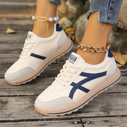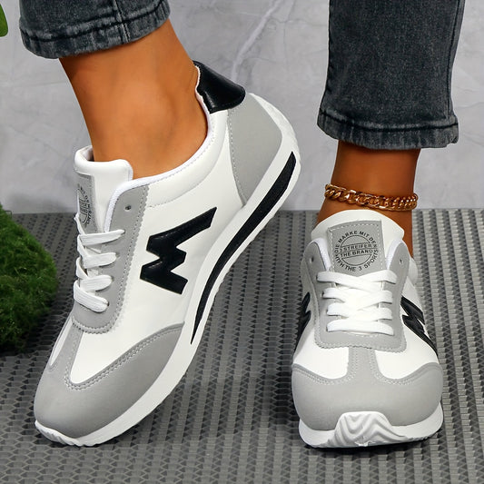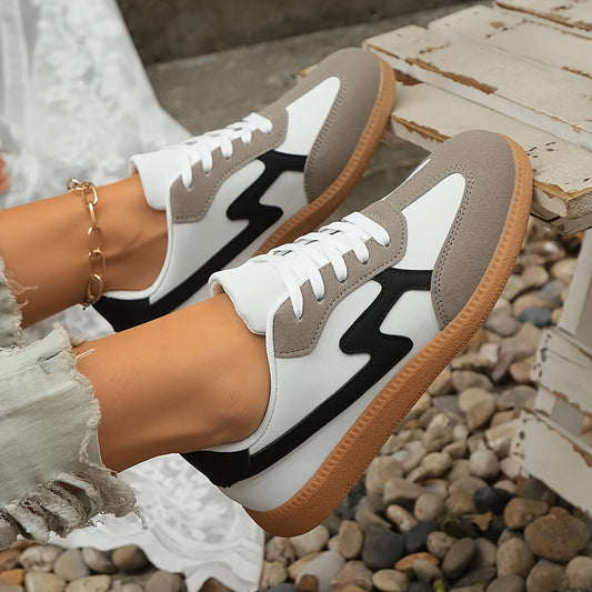 Կանացի Colorblock-ի նորաձև սպորտային կոշիկներ, ժանյակավոր փափուկ ներբան հարթակի ամենօրյա կոշիկներ, ցածր վերնամասով քայլելու հարմարավետ կոշիկներ