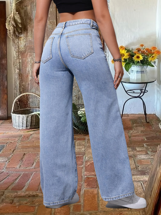 Կանացի պրեմիում ջինսե լայն ոտքերով ջինսե տաբատ՝ առաձգական բաց կապույտ ջինսե տաբատ՝ կտրատած գրպաններով, հարմարավետ և ոճային ամենօրյա հագուստի համար