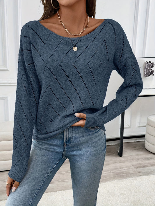 Կանացի ակրիլային տրիկոտաժե սվիտեր, երկար թևքերով, միագույն, միջին ձգվող, կանոնավոր չափսի, նավակաձև օձիքով, գարնանային/աշնանային համար