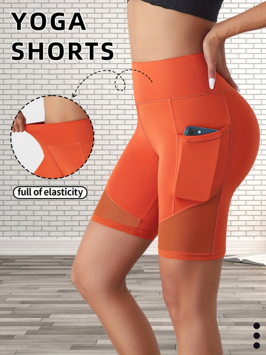 Բարձր գոտկատեղով ցանցային կոնտրաստ Յոգայի կարճ կիսաշրջազգեստ գրպանով, բարձր գոտկատեղով ձգվող վազքի շորտեր, կանացի ակտիվ հագուստ