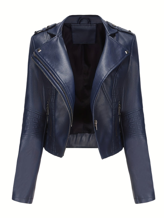 Կանացի պատահական արհեստական կաշվից բաճկոն, միաձույլ, երկարաթև, սովորական երկարություն, աշուն/ձմեռ, կայծակաճարմանդ, հյուսված, չձգվող գործվածք, 100% պոլիուրեթանային, մատիտ օձիք, ծայրի դետալ