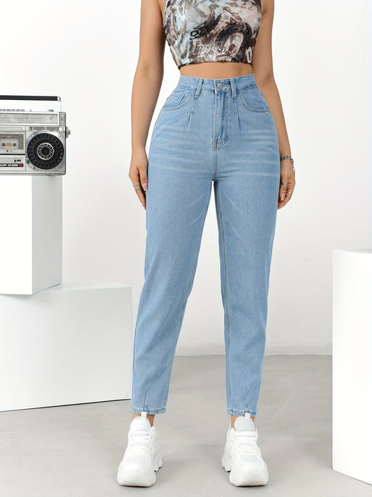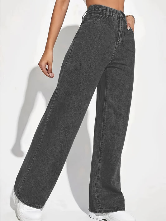 1 հատ Կանացի բարձր ձգվող բամբակյա լայն ոտքերի ջինս, պատահական լվացված միագույն ջինս, հյուսված գործվածք, բազմակողմանի գարուն/ամառ/աշուն - DXK1005BF861K