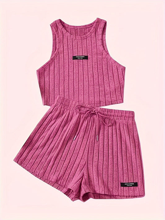 2024 թվականի նոր պատահական ծույլ նորաձևության գարնանային և ամառային հանդերձանքի հավաքածու հյուսված կարճ թևով և շորտերով