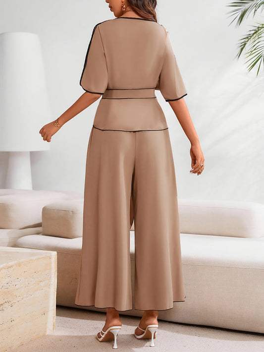 Նորաձև և էլեգանտ միագույն կարճ թևքով վերնաշապիկի և տաբատի հավաքածու կանանց համար