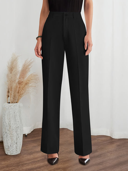 Շքեղ լայն ոտքերով, միագույն ուղիղ շալվար, էլեգանտ բարձր գոտկատեղով կոճակով առջևի տաբատ՝ աշխատանքի և գրասենյակի համար, կանացի հագուստ