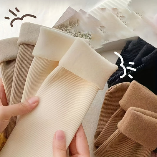 5 զույգ կանացի ջերմային բրդյա գուլպաներ, պինդ գույնի, պոլիեսթեր տրիկոտաժե գործվածք, 100% պոլիեսթեր, ձեռքով լվացվող