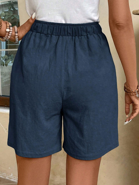 Նրբագեղ բարձր գոտկատեղով կանացի պատահական շորտեր - շքեղ սև կոճակի դետալներով, հարմարավետ պոլիեսթեր խառնուրդ, կատարյալ ամառվա համար