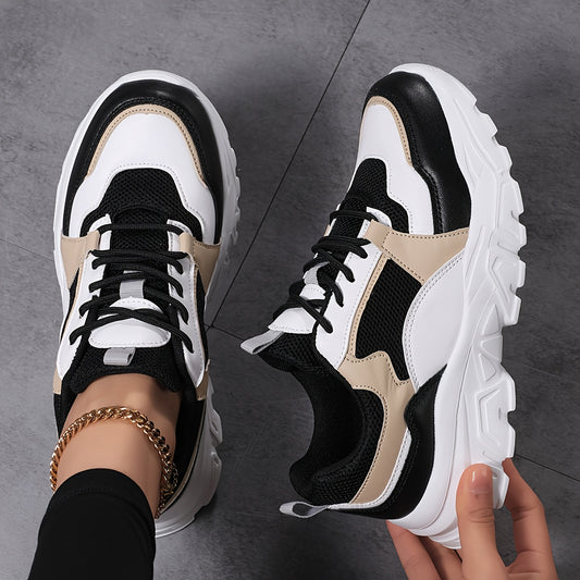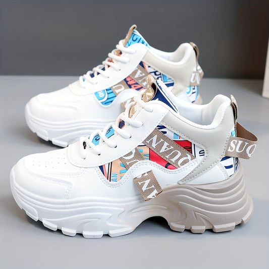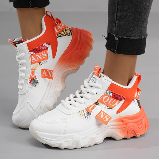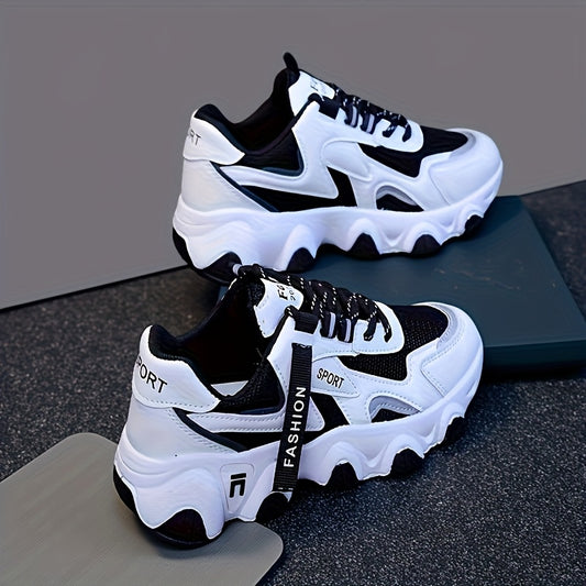 Կանացի տառերով դիզայնով հաստ սպորտային կոշիկներ, նորաձև, կապած բացօթյա կոշիկներ, հարմարավետ ցածր գագաթով սպորտային կոշիկներ