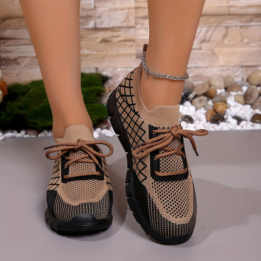 Կանացի թեթև, շնչող, սահող սպորտային կոշիկներ՝ ամենօրյա, ցածր գագաթով կոշիկներ՝ տրիկոտաժե գործվածքից և դիմացկուն PVC ներբանից, հարմարավետ ներսի և դրսի գարնանային հագուստի համար, շագանակագույն, սև, կանացի սպորտային կոշիկներ