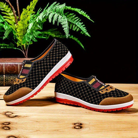 Women's Breathable Slip-On Loafers - Soft Sole Casual Walking Shoes, Lightweight & Comfortable, Beige Floral Pattern Fabric Upper, PU Cover Sole, Perfect for Casual Attire, Allseason Loafers | Slipon Comfort | Soft Sole Shoes