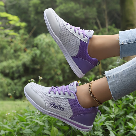 Women's Lightweight Casual Sneakers - Breathable Synthetic Synthetic Leather & Fabric Upper, Cushioned EVA/MD Sole, All-Season Lace-Up Walking Shoes for Work, Travel, Casual Attire - White with Purple Accents, Stylish Athleti