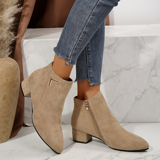 Կանացի ֆլանելային կոճ կոշիկներ, սրածայր բութ, կողային կայծակաճարմանդ, միաձույլ գույն, ցածր կրունկ, կտորից աստառով և PU ներբանով, բոլոր սեզոնային հարմարավետության համար, Taizhou Origin