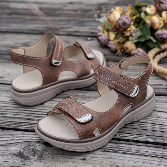 Չսահող կանացի հարթակի բաց սանդալներ, միաձույլ գույնի կոճերի ճարմանդային ժապավենով պատահական բացօթյա կոշիկներ
