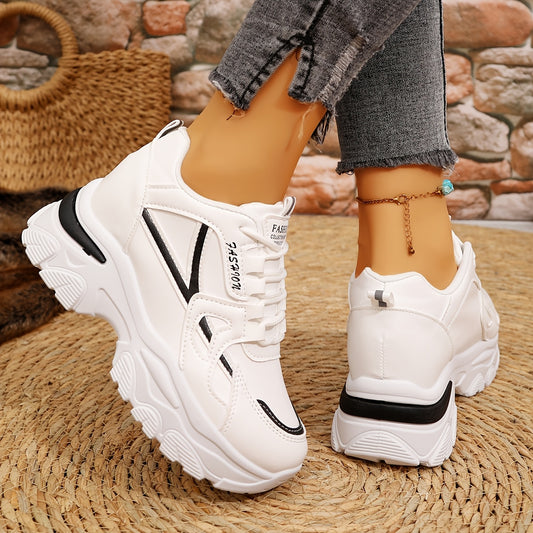 Կանացի պլատֆորմի սպորտային կոշիկներ, երկգույն ժանյակավոր բարձրության բարձրացնող սպորտային կոշիկներ, բոլոր խաղերի համար քայլելու մարզիչներ