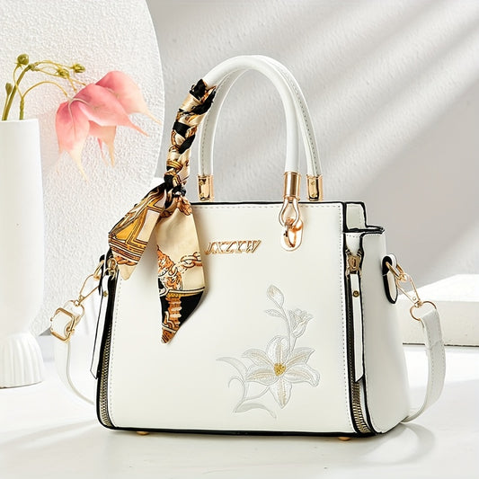 Embroidered Colorful Wo 'S Handbag with Random Scarf Color, Business Spring/Summer Date, Casual Travel, Mother'S Day Gift, Large Capacity, Middle-Aged, Commuting, Contrast Color