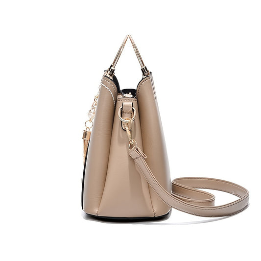FIDM Women'S Chic Beige Crossbody Bag with Bow Detail - Versatile Synthetic Faux Leather Shoulder Purse with Zipper Closure, Elegant Design for Casual or Formal Occasions, Casual Shoulder Bag | Elegant Women'S Accessory | Syn