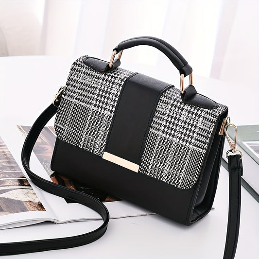 Trendy Plaid Pattern Handbags, Snap Button Crossbody Bag, Women's Top Handle Flap Purses For Everyday