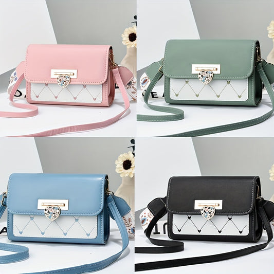 Chic Versatile Women’s Shoulder Bag with Cute Heart Pattern - Adjustable Strap, Magnetic Closure, in Pink, Green, Blue, Black, Casual Crossbody Bag | Playful Heart Design | Decorative Zipper Charm