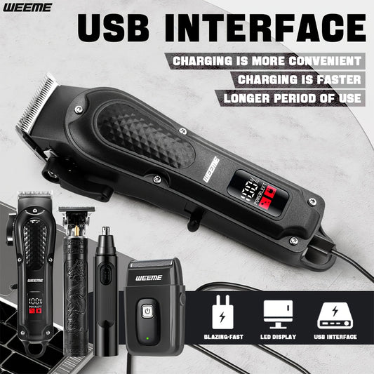 Weeme Cordless Electric Hair Clipper, USB Rechargeable, LCD Display, 36V Power Motor, 1500mAh Battery, 3 Colors, Professional Hair Trimmer for Home Use