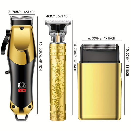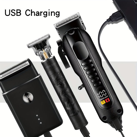 3pcs Men'S Professional Hair & Beard Grooming Kit - Cordless Clippers with LED Display, Precision Trimmer Set, USB Rechargeable, for Home Use, Perfect Holiday Gift