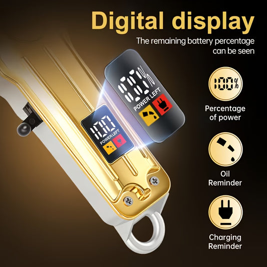 Professional Men's Electric Hair Clipper - Cordless, Adjustable, Rechargeable with LCD Display, USB Charging, for Hair, Face, Beard Trimming - ABS Material