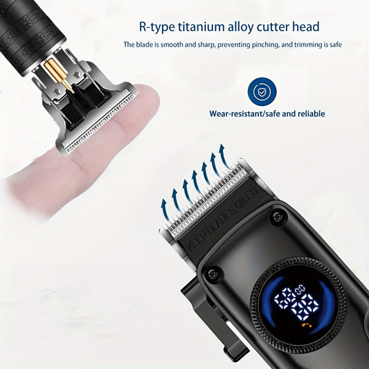 A Professional Men'S Electric Hair Clipper Set with an LED Display, an Electric Shaver, Four Guide Combs for Zero-Gap Cutting, a Small Brush, TYPE-C Charging, Perfect As a Gift for Men, Father'S Day Presents