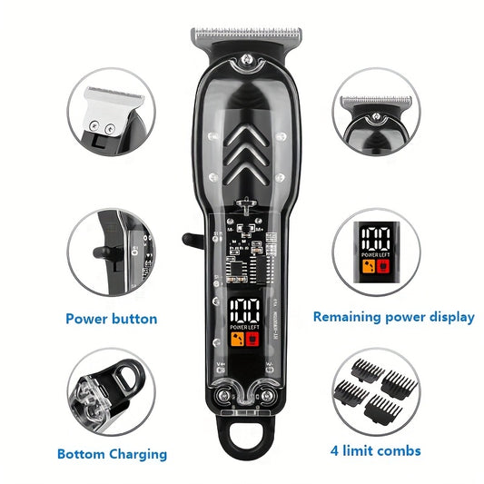 Rechargeable Professional Grooming Kit, Men's Digital Display Electric Trimmer, Minimalist Transparent Design | Portable Haircutting Tool for Home & Salon Use, Essential for Stylists, Ideal for Hair & Beard Trimming, Father's