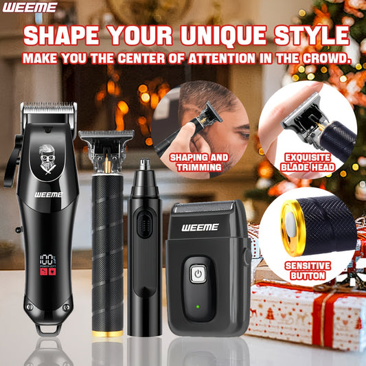 WEEME 4pcs Hair Clipper for Men Set, Cordless Electric Hair Clipper, T-Shaped Beard Trimmer & Nose Hair Trimmer, Electric Shaver, Professional Haircutting and Beauty Kit for Men Grooming, Home Barber Use, Precision Styling To