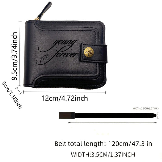 2pcs Men's Belt and Coin Purse Set, Young Forever Series with Exquisite Print Design, Premium Business Combo, Unisex Fashion Accessories for Daily Use, Perfect Gift for Dad